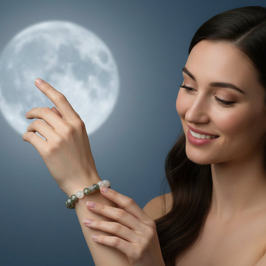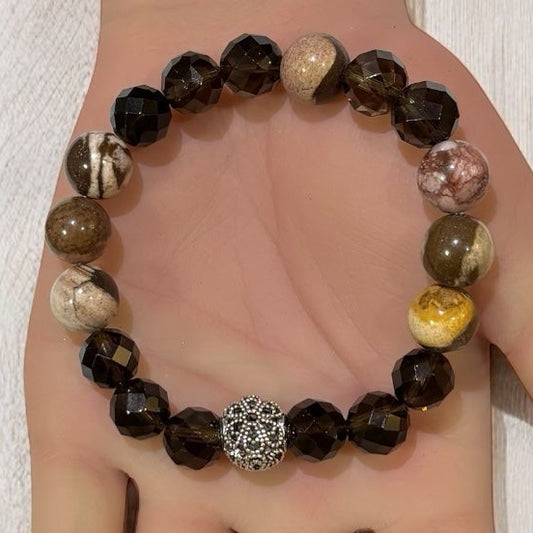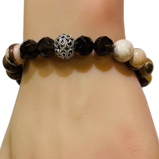 Bracelet - Australian Jasper and Smokey Quartz Crystal with Tibetan Finding - Medium