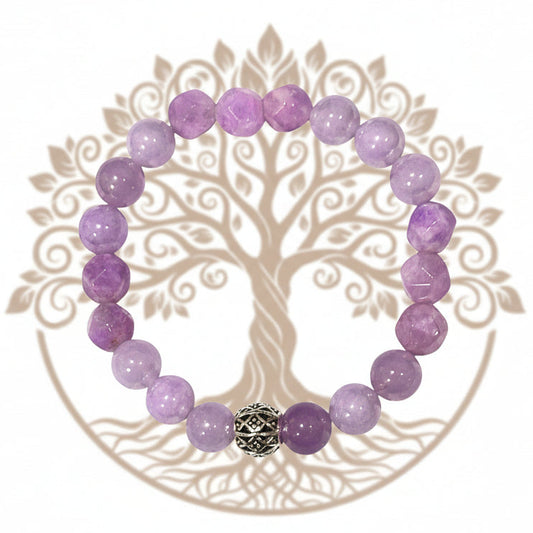 Bracelet - Lavender Jade, Round & Faceted Gemstone with Tibetan Silver Charm