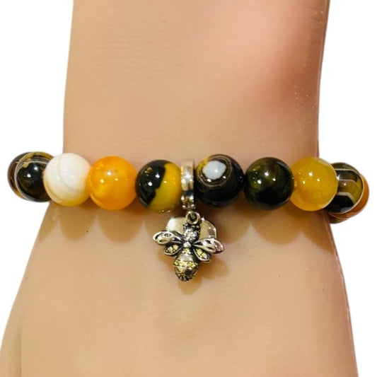 Bracelet - Bumblebee Jasper with Stirling Silver Bumblebee Charm