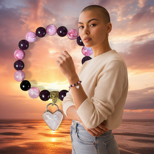 Bracelet - Kunzite with Pink Glass Crystal and Rose Quartz Heart Charm