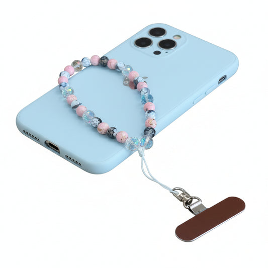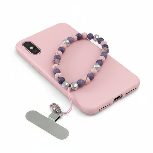 Phone Strap - Grey-White Fire Agate & Pink Howlite