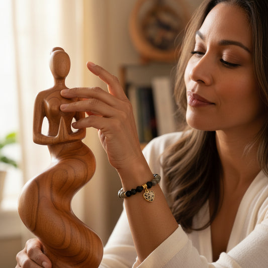 Bracelet - Black Onyx and Sterling Silver Flower Charm